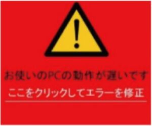 最近また「ウイルスに感染しています」や「システムが破損しています」といった偽警告を表示して不安を煽り高額な費用を騙し取られる事案が多発しているようです。
